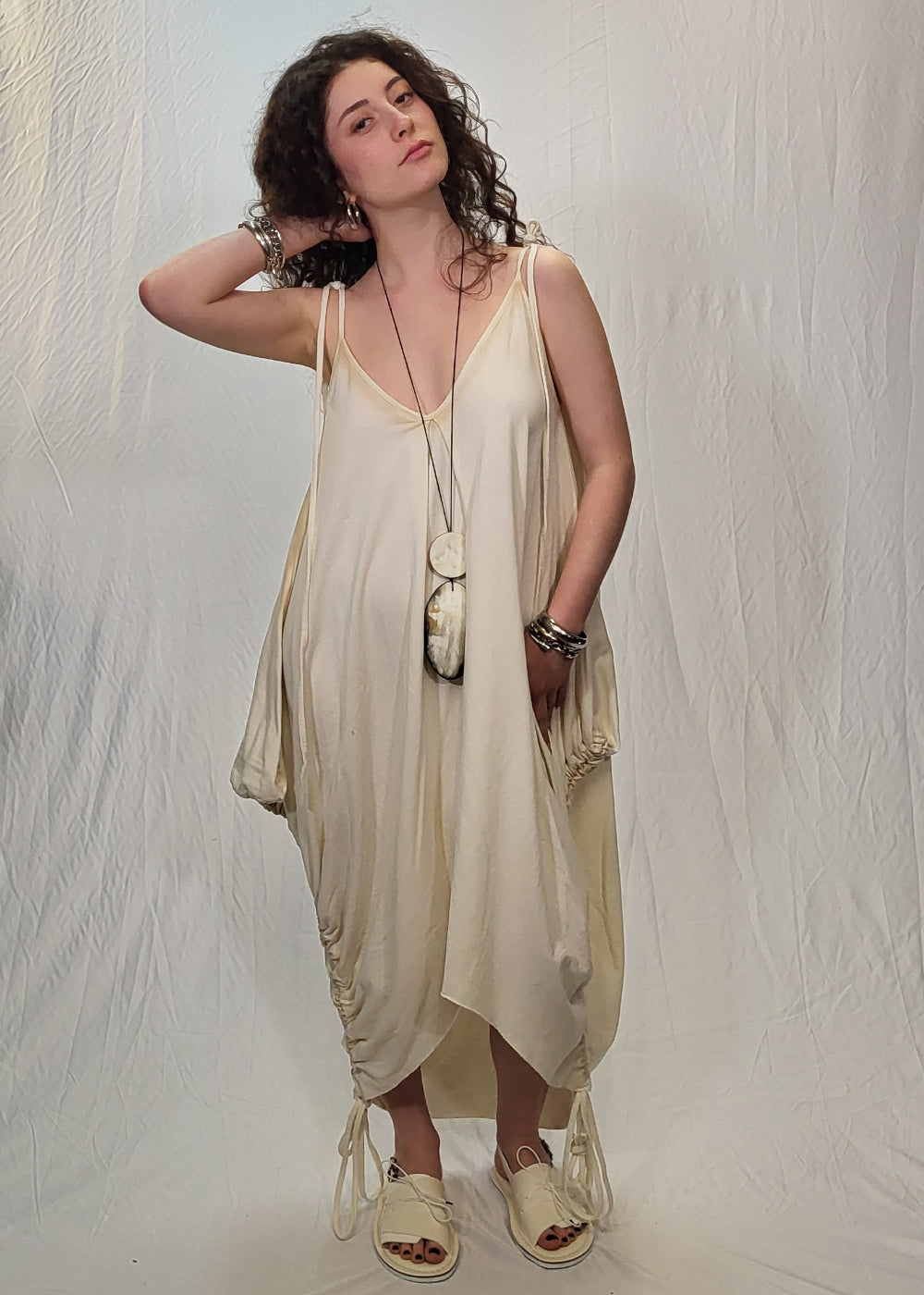 - Un lien de chaque côté pour faire évoluer la silhouette de la robe